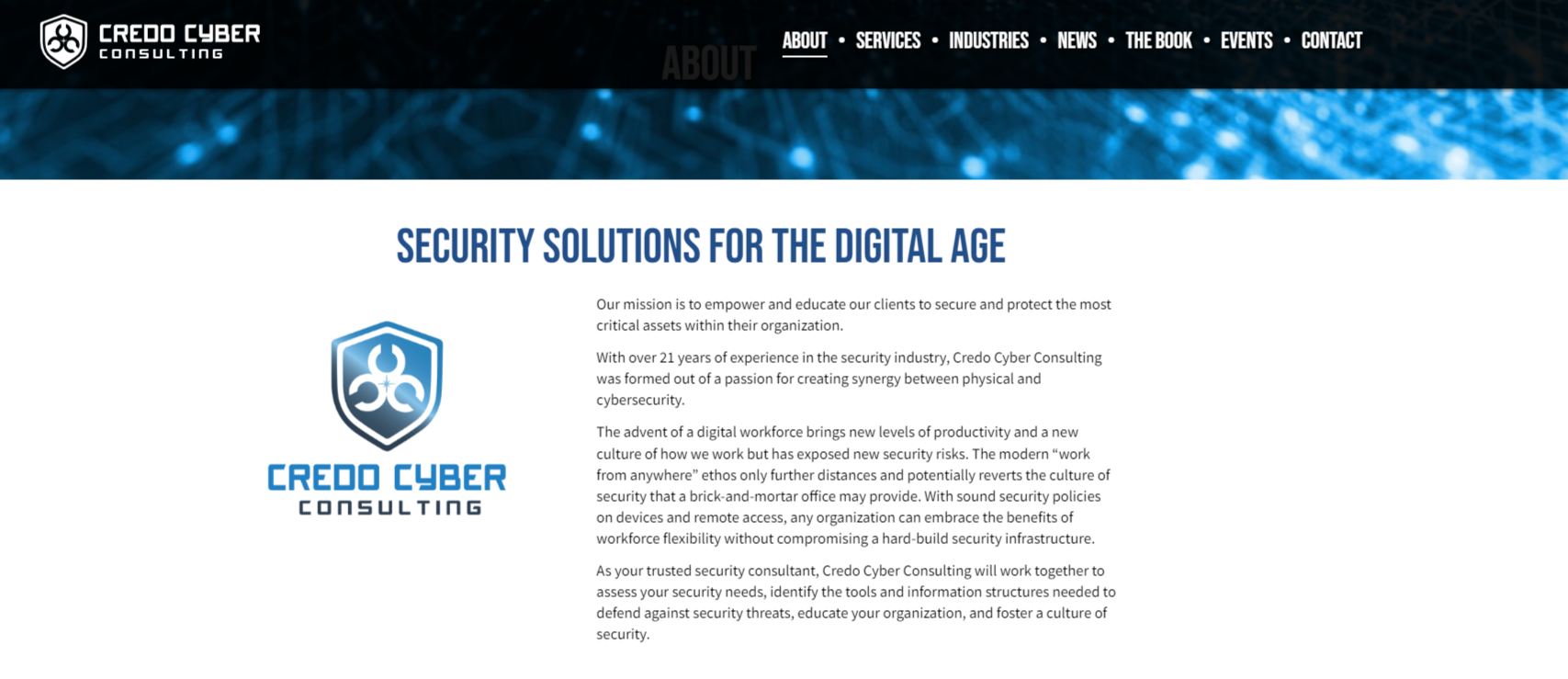 Antoinette King, founder of Credo Cyber Consulting, is a cybersecurity consultant who empowers and educates her clients to secure and protect the most critical assets within their organization. Susan worked with Antoinette to grow her events and speakership program, support media relations, build a social media strategy, and draft content for her website.