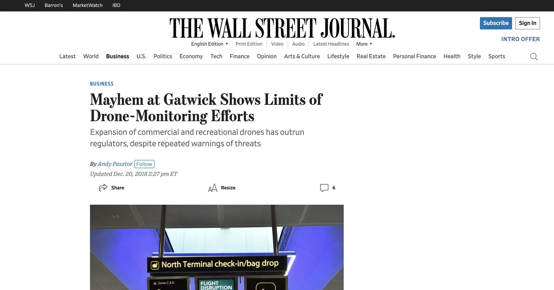 ➝ The Wall Street Journal: Mayhem at Gatwick Shows Limits of Drone-Monitoring Efforts