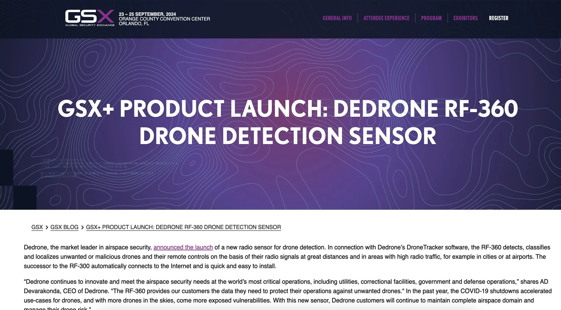 ➝ GSX / Press release: GSX+ PRODUCT LAUNCH: DEDRONE RF-360 DRONE DETECTION SENSOR