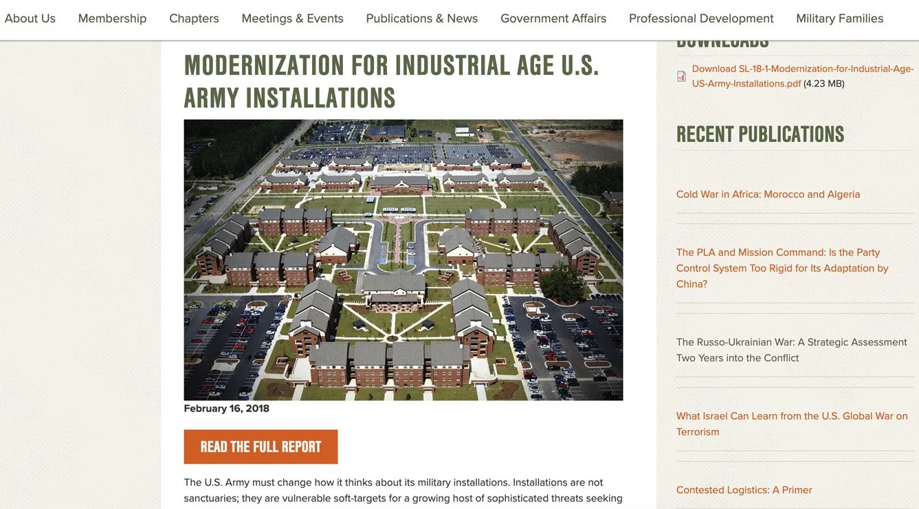 ➝ Association of the US Army - Institute of Land Warfare: Modernization for Industrial Age U.S. Army Installations